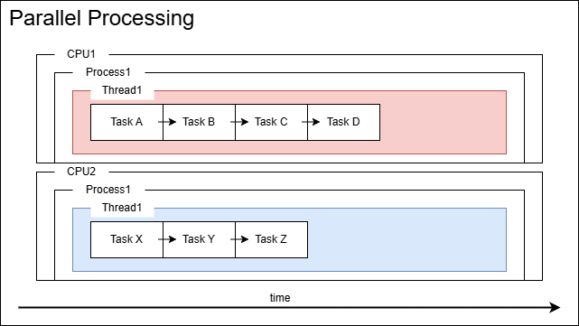 | 並列処理 | 複数処理を同時処理 | 複数CPUで同時 | あり | CPU負荷の高い処理 |